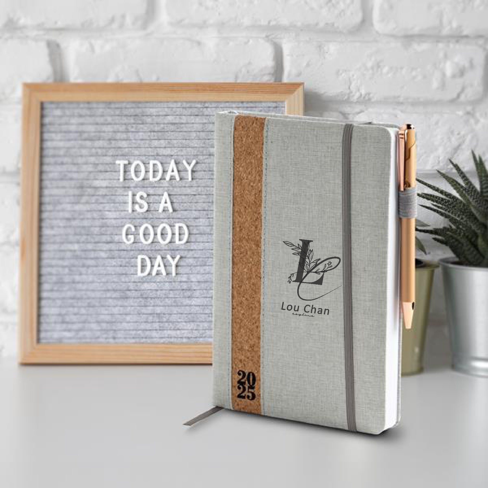 No interior inclui: espaço para preenchimento de dados pessoais; calendários: 2024 e 2025; feriados em lista; plano de férias; plano diário 2023; plano diário 2024 e espaço para preenchimento de contactos importantes (de A-Z).