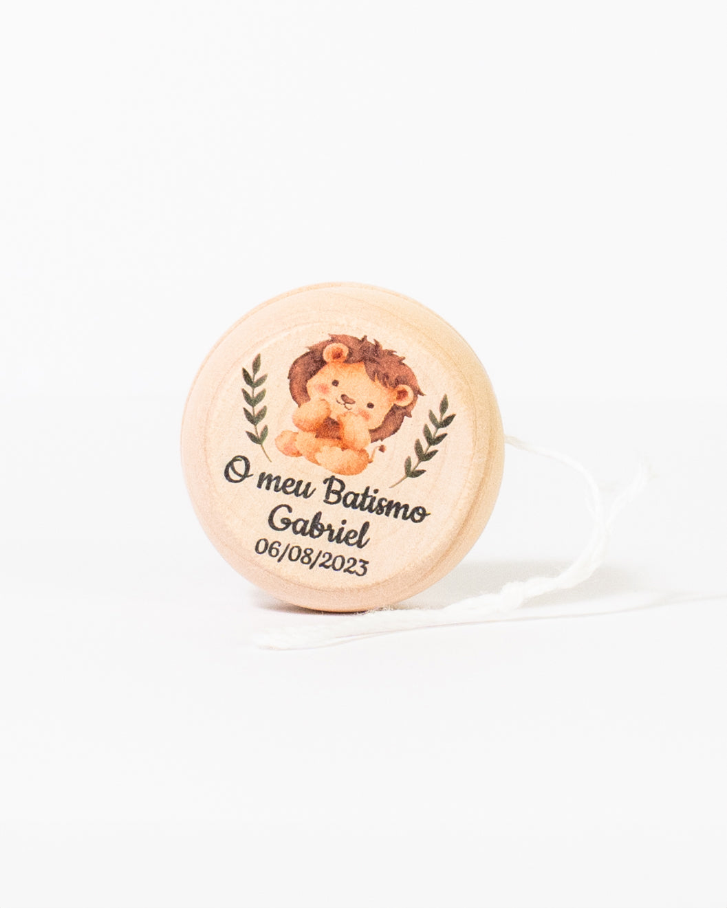 O clássico brinquedo ioiô, personalizável e feito com ambos os lados em madeira.