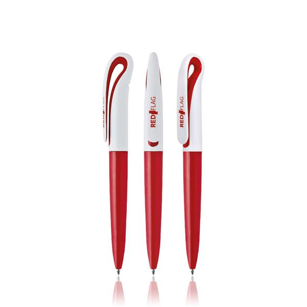 Escrita preta, sistema twist. Com um “design” diferente e moderno, conta com um detalhe colorido por dentro do clip. Ótima para dar o twist necessário à sua marca.