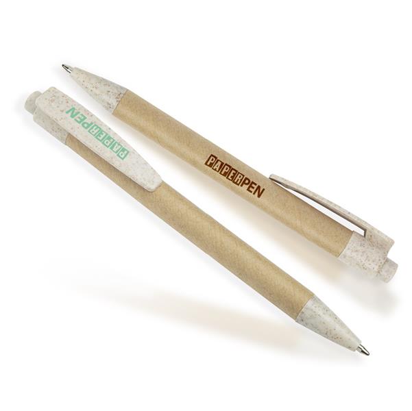 Esferográfica eco-friendly, Sya oferece a harmonia entre o seu corpo em cartão e os detalhes em fibra de trigo. Esta esferográfica tem sistema pulsar e escrita preta