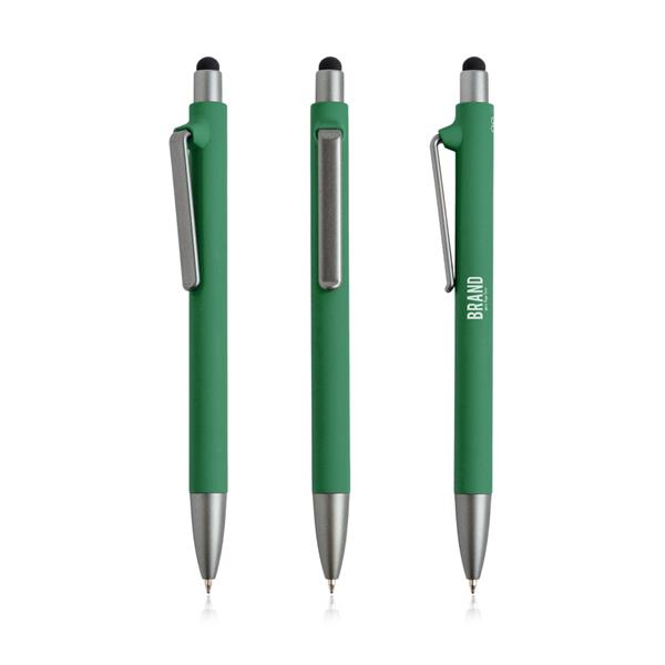 Um brinde que junta a reutilização de materiais com o plástico reciclado e a elegância e suavidade do toque de borracha. Esta esferográfica com touch, numa variada gama de cores, tem sistema push e escrita azul.