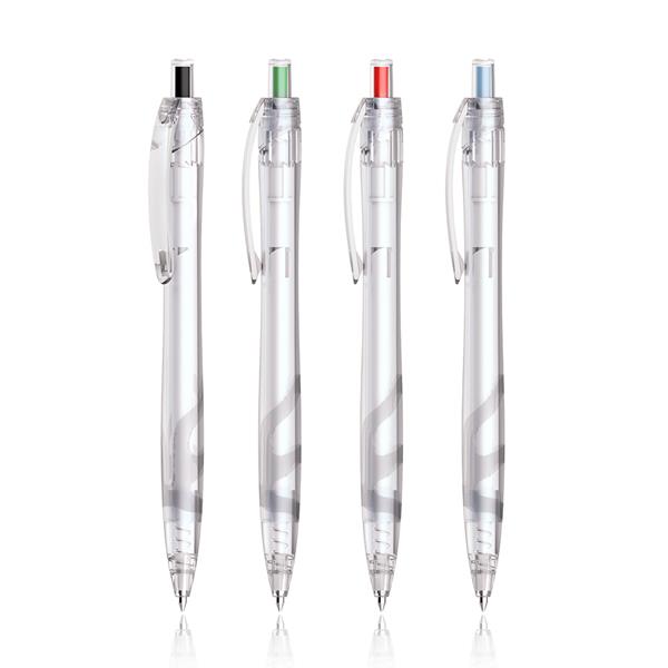 A esferográfica Lucy feita em PET reciclado, apresenta corpo transparente com um detalhe de cor no clique claque. Esferográfica de sistema pulsar e escrita azul. Uma ótima solução para substituir o plástico regular e pensar no meio ambiente. Passo a passo, associe a sua marca à mudança que a Terra precisa!